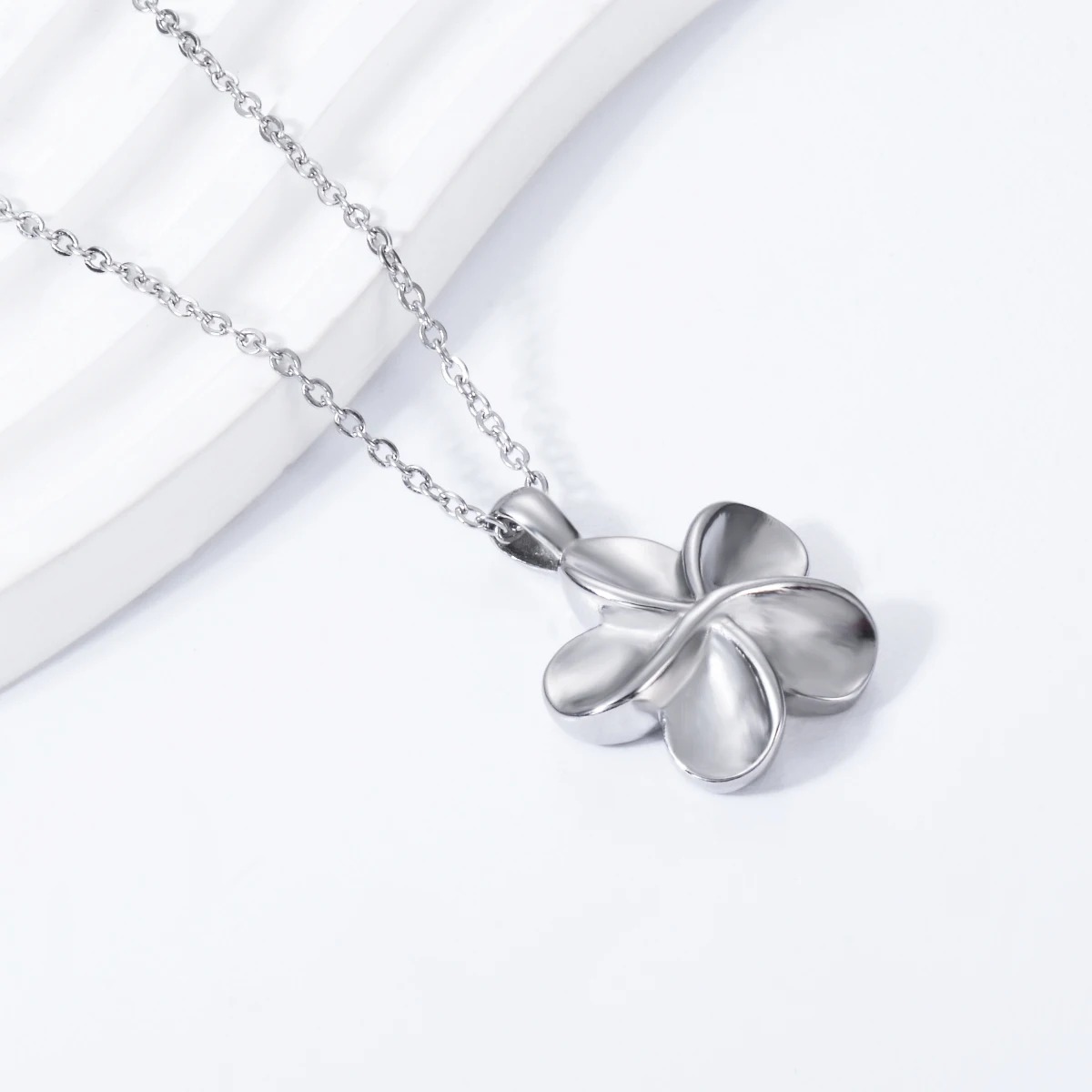 Collar con colgante, forma de flor. De acero inoxidable, es perfecto para almacenar pequeños recuerdos como cenizas. Sus propiedades impermeables y resistentes a la decoloración garantizan un uso duradero sin perder su valor. Adecuado para aquellos que desean mantener sus preciados recuerdos cerca.